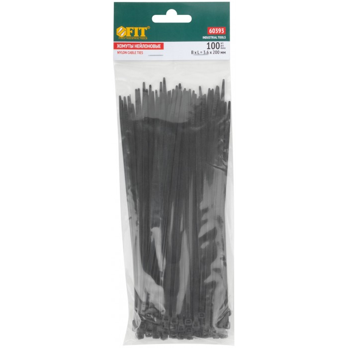 Хомуты нейлоновые, черные д/проводов 100 шт., 200x3,6 мм (60393)