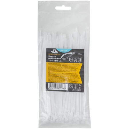 Хомуты нейлоновые для проводов, белые 100 шт., 2,5х150 мм (60244М)