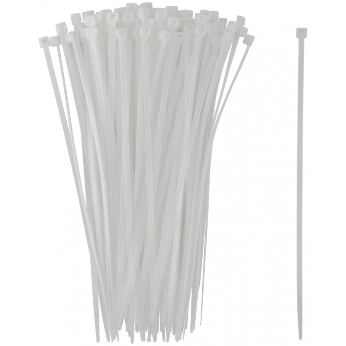 Белые, для проводов. Для связывания кабелей во время электромонтажных работ. Материал: нейлон. Упаковка: п/э пакет с подвесом.