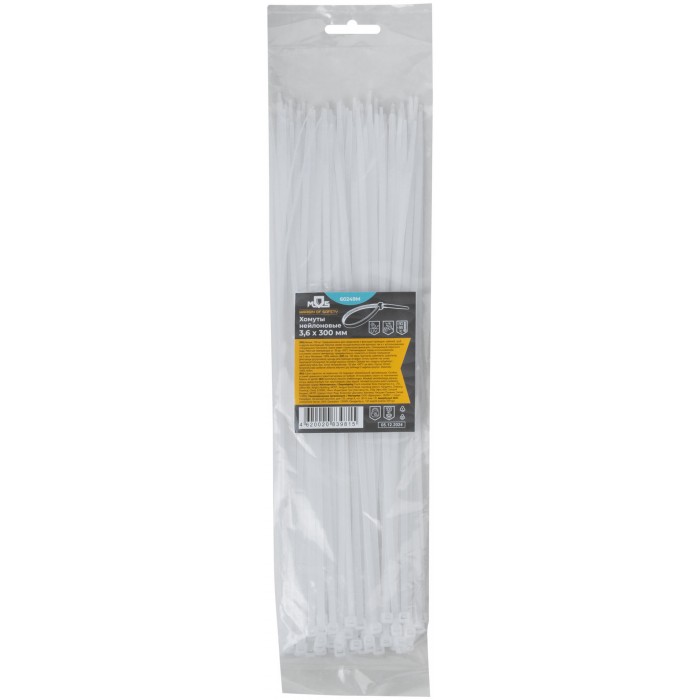 Хомуты нейлоновые для проводов, белые 100 шт., 3,6х300 мм (60249М)