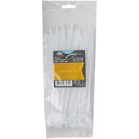 Хомуты нейлоновые для проводов, белые 100 шт., 4,8х200 мм (60254М)