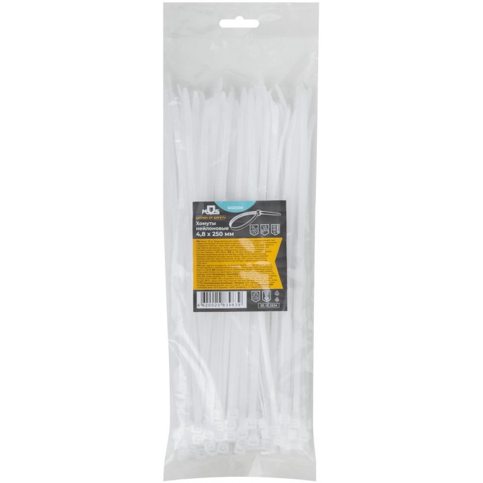 Хомуты нейлоновые для проводов, белые 100 шт., 4,8х250 мм (60255М)