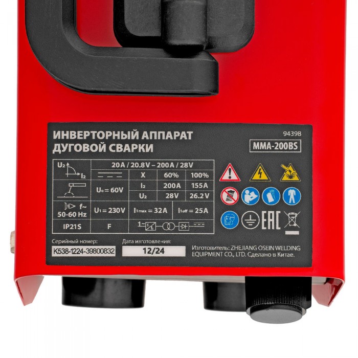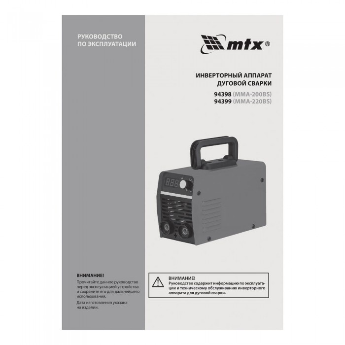 Инверторный аппарат дуговой сварки MMA-200BS, 200 А, ПВ 60% MTX (94398)