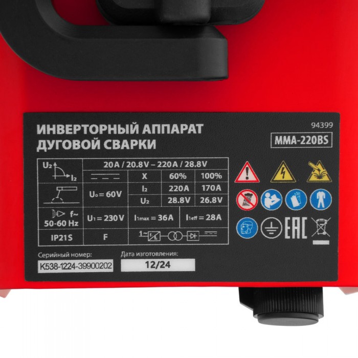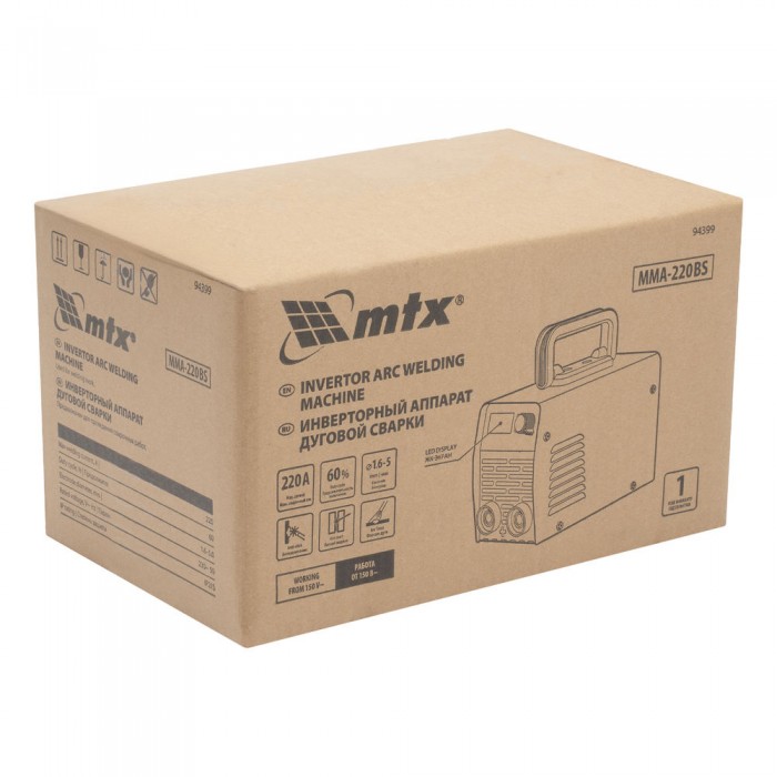 Инверторный аппарат дуговой сварки MMA-220BS, 220 А, ПВ 60% MTX (94399)