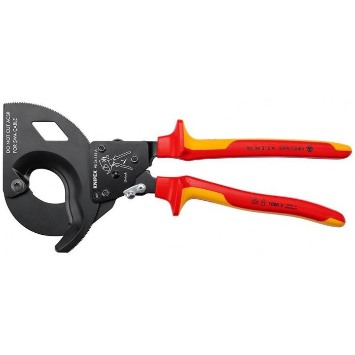 Кабелерез c трещоткой VDE, для кабелей со стальным армированием, SWA O 45 мм (380 мм?/MCM 750), длина 315 мм (KN-9536315A)