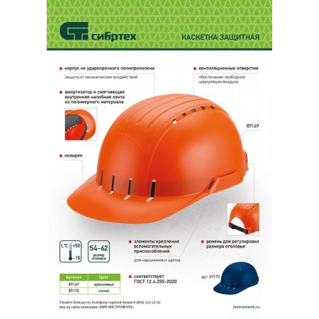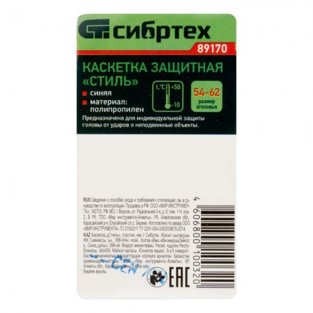 Каскетка защитная "Стиль", пластиковая, синяя Сибртех (89170)