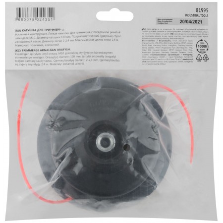 Катушка для триммера универсальная М10, полуавтоматическая, усиленная, 10000 об/мин; леска 2,0-2,4 мм (81995)