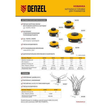 Катушка триммер. полуавтомат , гайка М10,М10,М8, лев.,шаг 1,0 1,25мм Denzel (96391)