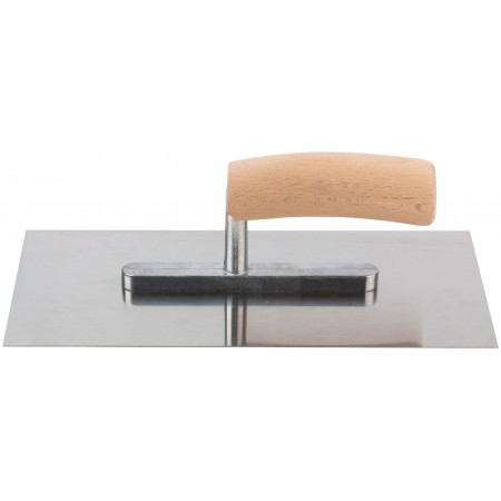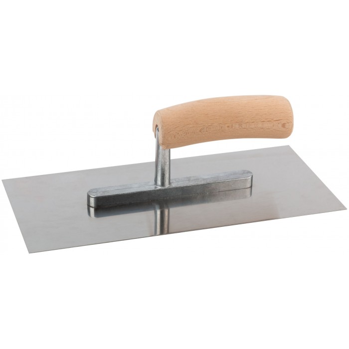 Кельма штукатурная, полотно из нержавеющей стали, эргономическая ручка из твердого дерева. Особо прочное соединение полотна с ручкой. Для равномерного нанесения штукатурного раствора на поверхность. Материал: нержавеющая сталь, деревянная ручка.