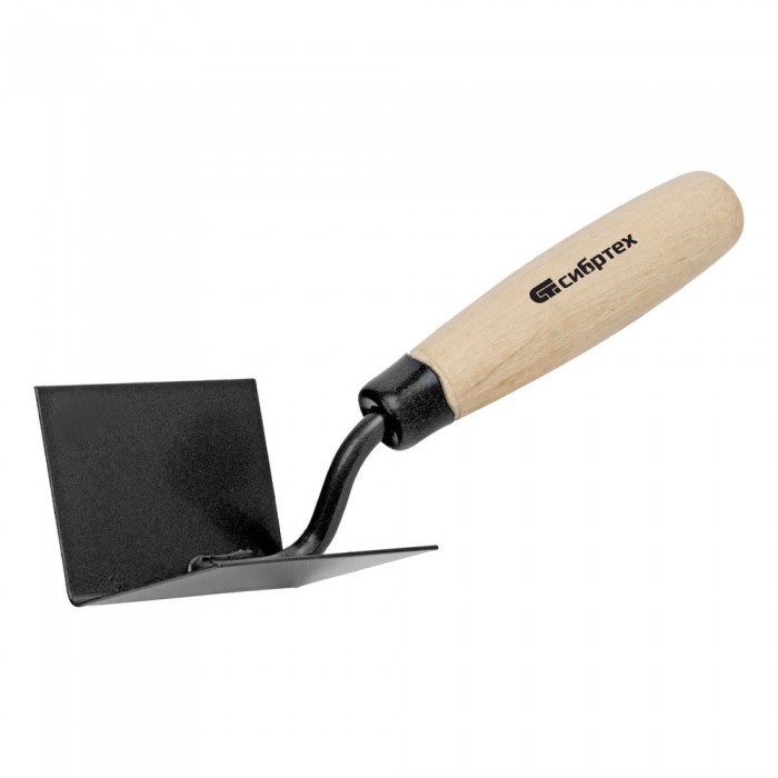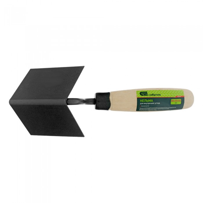 Кельма угловая, 80 х 60 х 60 мм, стальная, для внутренних углов, буковая ручка Сибртех (86307)
