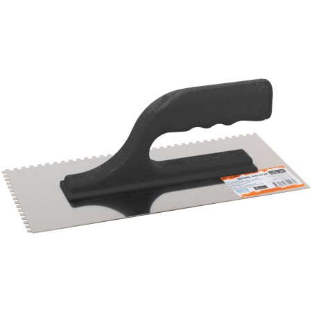 Кельма зубчатая 4 x 4, нержавеющая сталь, 270 x 130 мм, пластиковая ручка (30-2041)