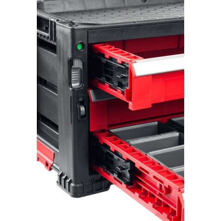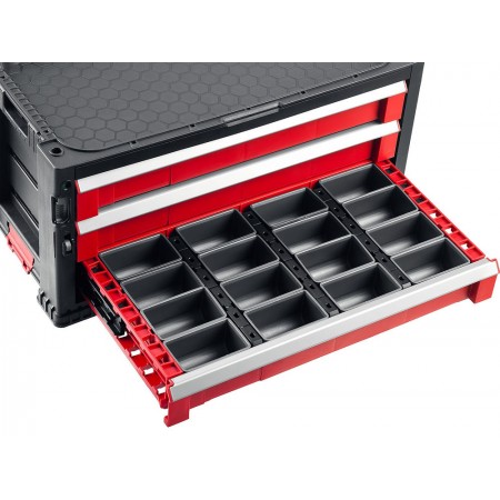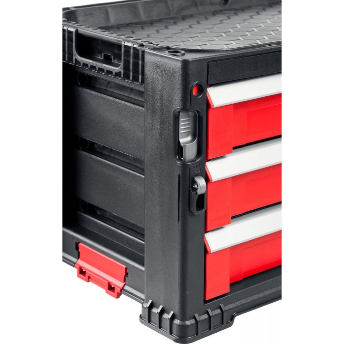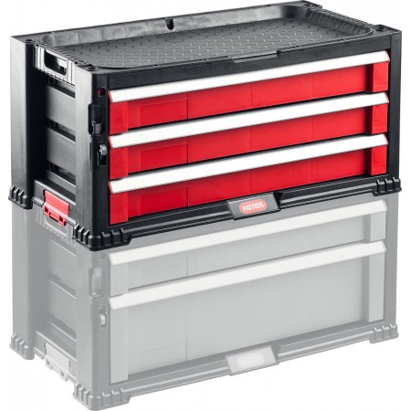 Отличное решение хранения - это система из ящиков. Система оснащена колесами для обеспечения его мобильности, различный размер ящиков и наличие дополнительных внутренних ячеек, позволяют грамотно организовать пространство. Вы можете купить систему хранения из пяти ящиков и использовать ее самостоятельно, а так же дополнить ее такими же системами из двух или трех ящиков. Ящики удобно крепятся друг на друга благодаря специальным встроенным защелкам.