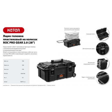 Вместительный ящик 22” является частью системы KETER PRO GEAR, позволяющей соединять нужные вам ящики в любой комбинации, для хранения или удобства переноски.