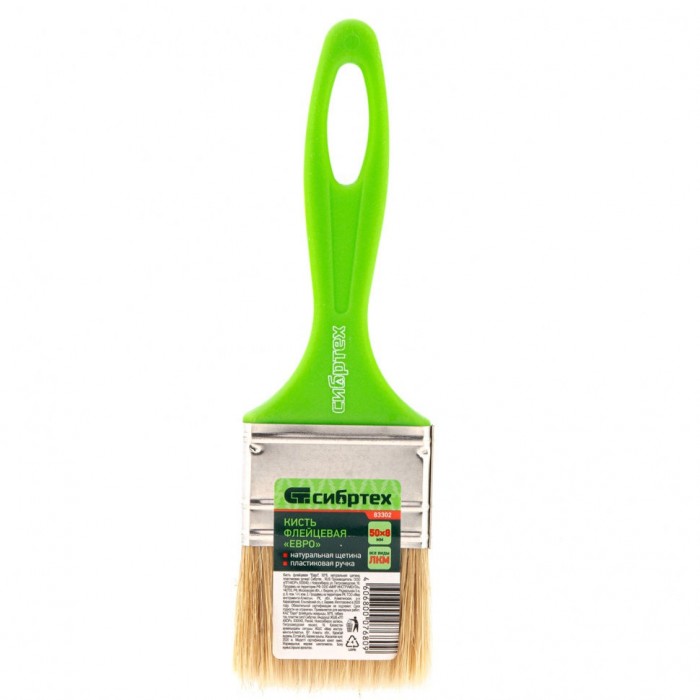 Кисть флейцевая "Евро", 50 x 8, натуральная щетина, пластиковая ручка Сибртех (83302)