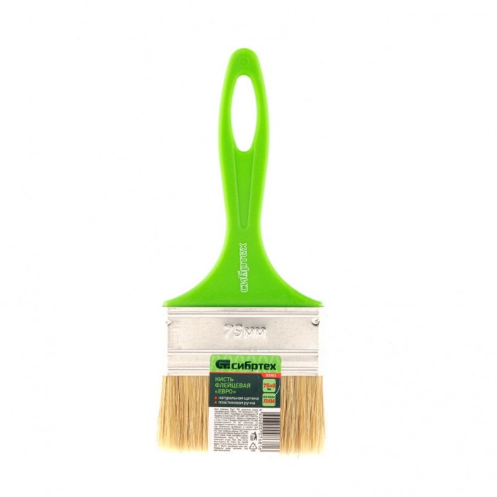 Кисть флейцевая "Евро", 75 x 8, натуральная щетина, пластиковая ручка Сибртех (83303)