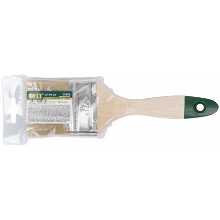 «Хард». Для работы со всеми видами лакокрасочных материалов. Натуральная светлая щетина, деревянная ручка.