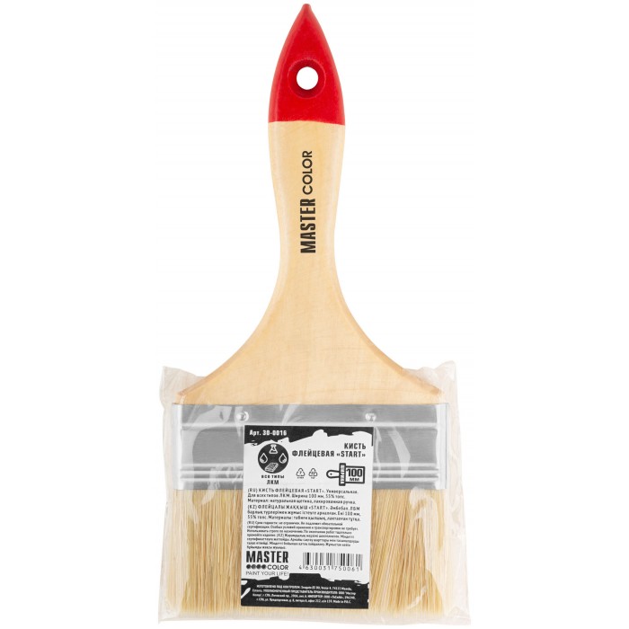 Кисть флейцевая, натур. щетина, 55% топс, лакиров.ручка, ширина 100 мм (30-0016)