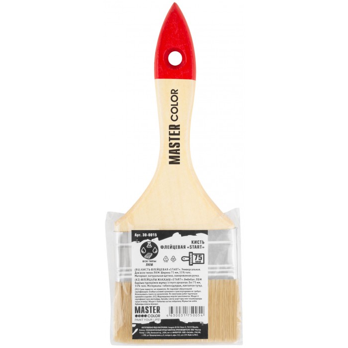 Кисть флейцевая, натур. щетина, 55% топс, лакиров.ручка, ширина 75 мм (30-0015)