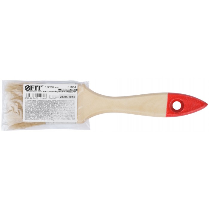 Кисть флейцевая "Стандарт", натур.светлая щетина, деревянная ручка 1,5" (38 мм) (01034)