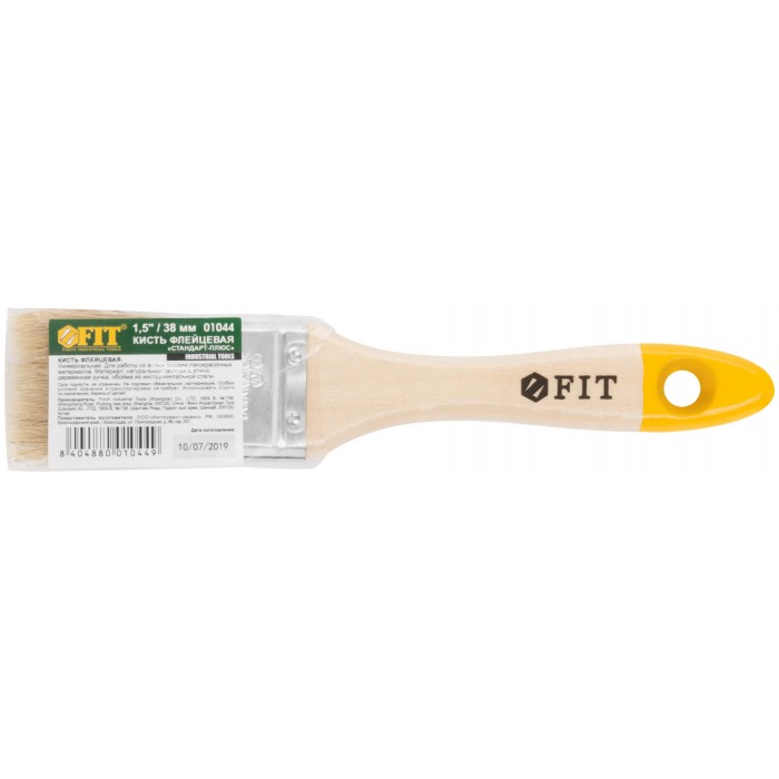 Кисть флейцевая "Стандарт-Плюс", натур.светлая щетина, деревянная ручка 1,5" (38 мм) (01044)