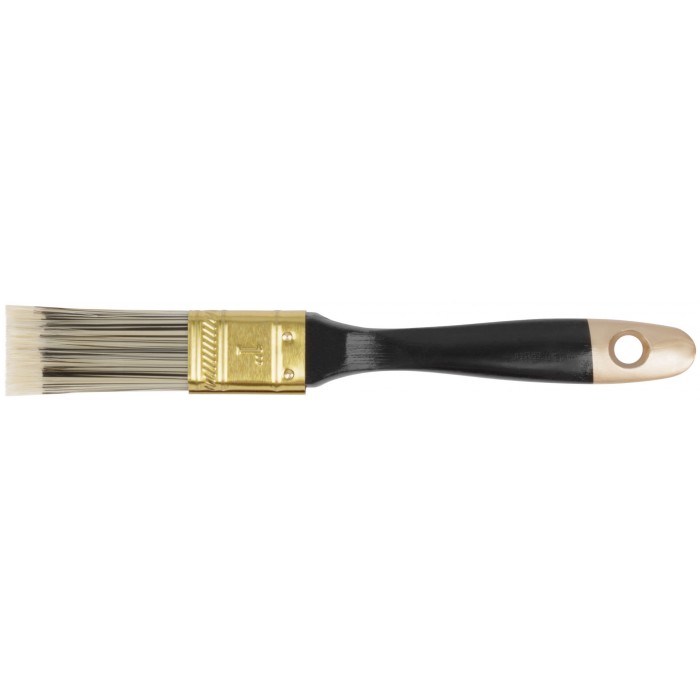 «Стайл». Для работы с вододисперсионными красками и лаками (кроме нитролаков и нитрокрасок). Искусственная чёрно-белая щетина, деревянная ручка.
