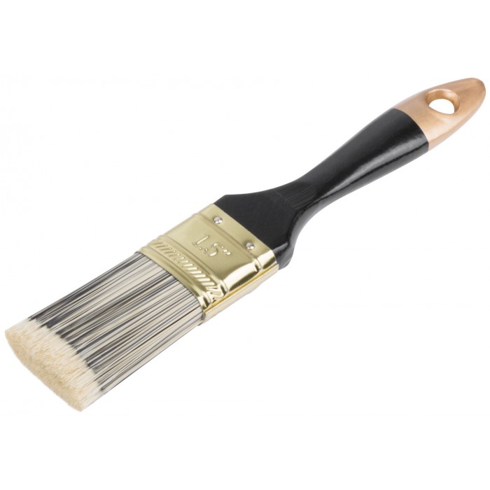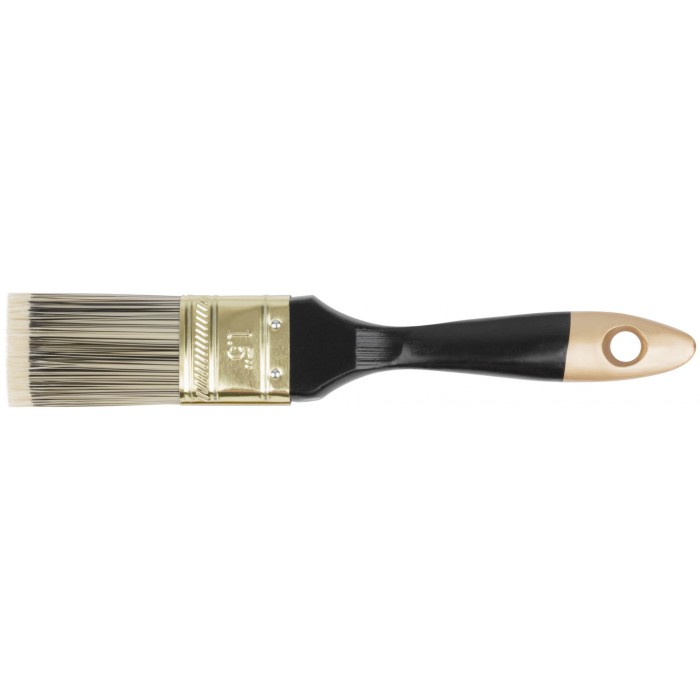 «Стайл». Для работы с вододисперсионными красками и лаками (кроме нитролаков и нитрокрасок). Искусственная чёрно-белая щетина, деревянная ручка.