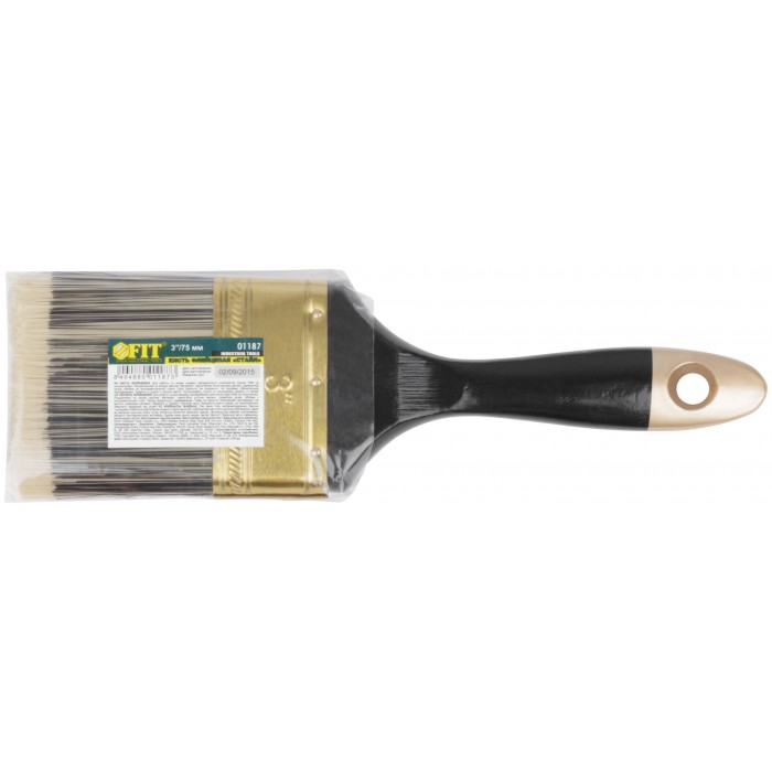 Кисть флейцевая "Стайл", искусственная черно-белая щетина, деревянная ручка 3" (75 мм) (01187)