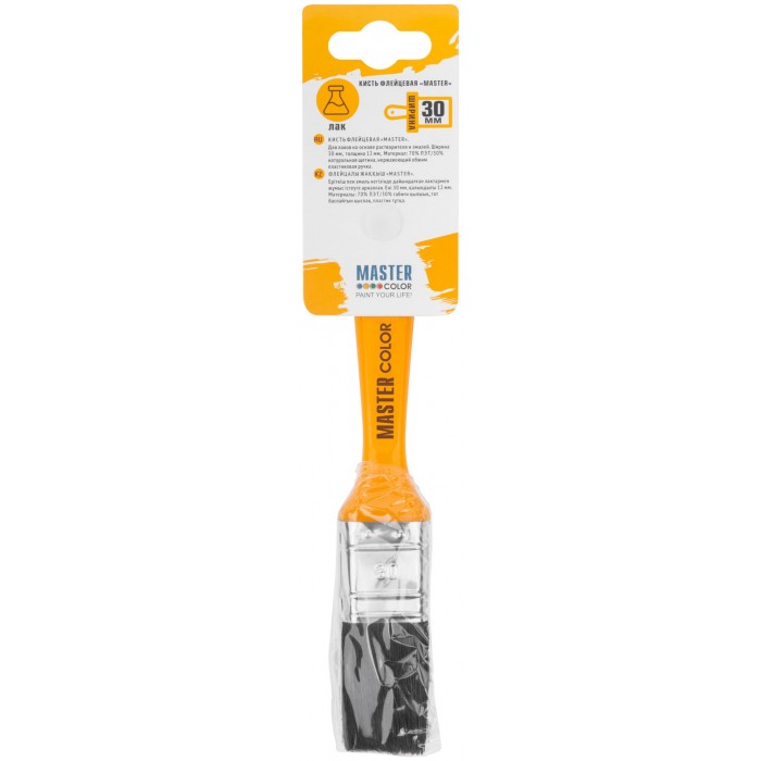 Кисть флейцевая, толщ. 12 мм, 70% ПБT/30% чёрн.натур. щетина, нерж. обжим, пласт.ручка, ширина 30 мм (30-0161)