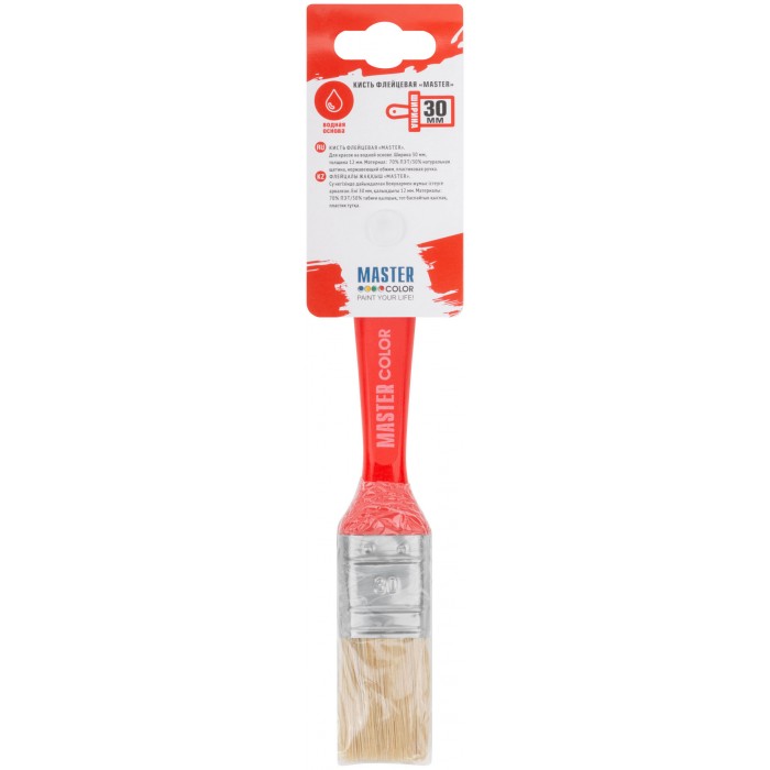 Кисть флейцевая, толщ. 12 мм, 70% ПБT/30% светлая натур. щетина, нерж.обжим, пласт. ручка, ширина 30 мм (30-0121)