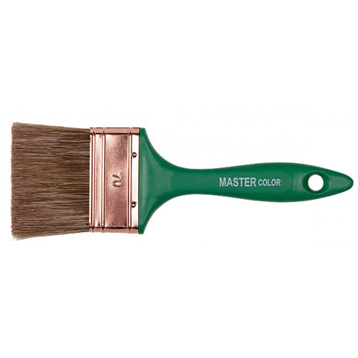 Качественный микс из темной натуральной и синтетической щетины. 70% топс. Подходит для лазурей, пропиток , антисептиков. Нержавеющий обжим. Пластиковая ручка. Дополнительная фиксация обжима на заклепки.