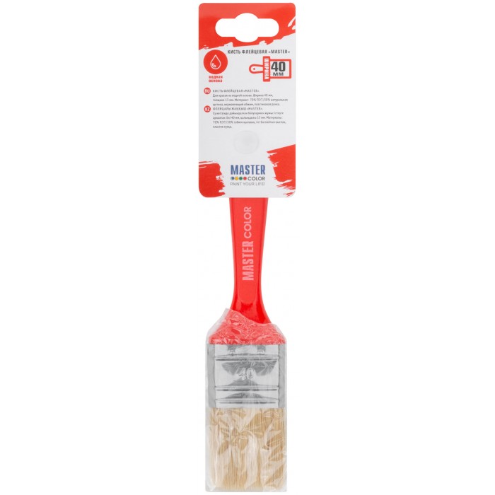 Кисть флейцевая, толщ. 13 мм, 70% ПБT/30% светлая натур. щетина, нерж.обжим, пласт. ручка, ширина 40 мм (30-0122)