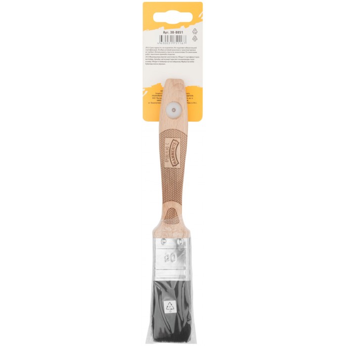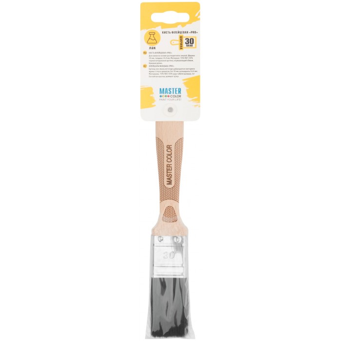 Кисть флейцевая, толщ. 14 мм, 70% ПБT/30% черная натур. щетина, нерж. обжим, ширина 30 мм (30-0051)