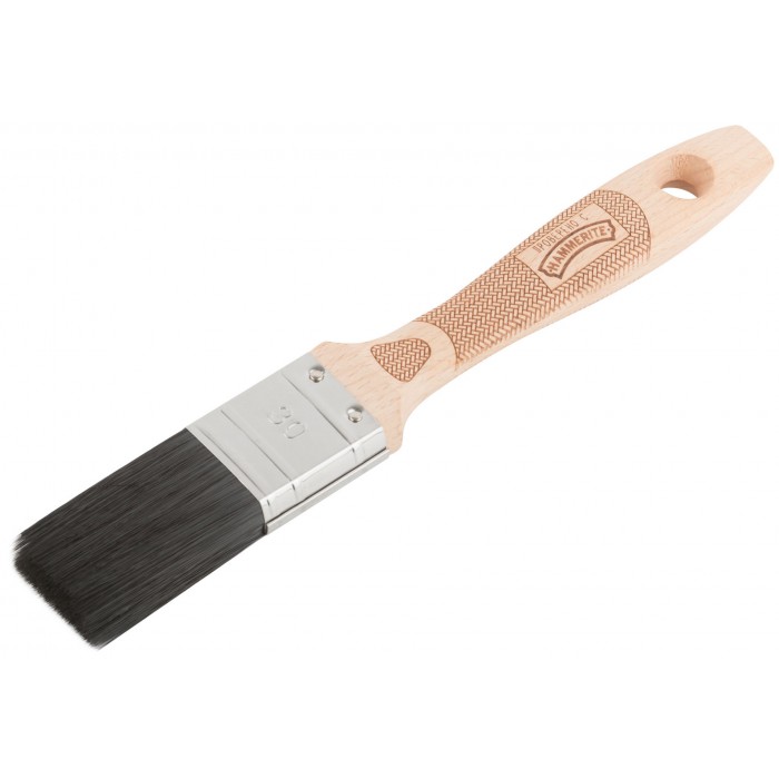 Высококачественный микс из темной стабилизированной натуральной и синтетической щетины. 75% топс. Оптимально подходит для лаков на основе растворителя и эмалей. Нержавеющий обжим. Эргономичная ручка из бука. Дополнительная фиксация обжима на заклепки.