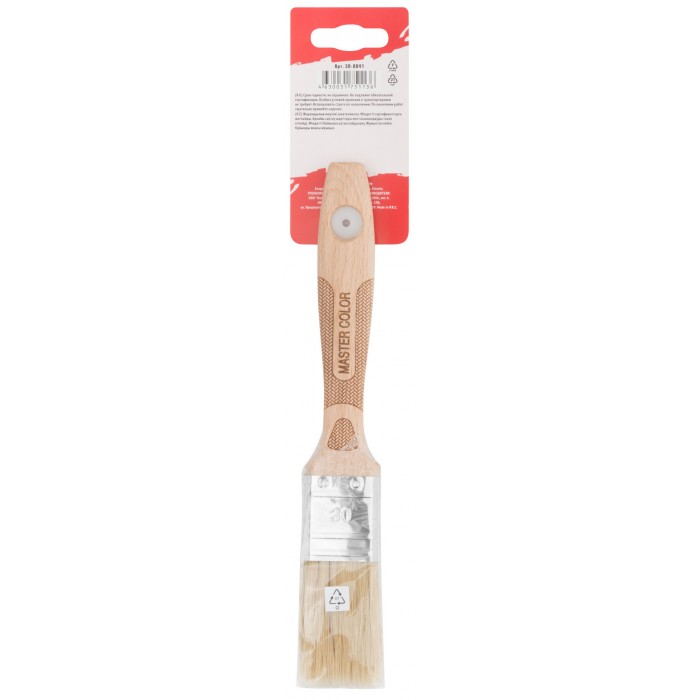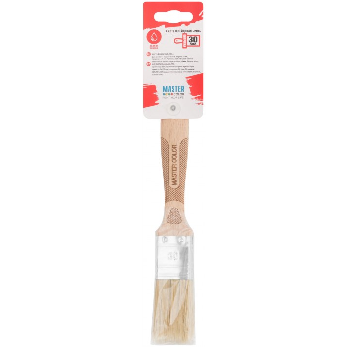 Кисть флейцевая, толщ. 14,4 мм, 70% ПБT/30% светлая натур. щетина, нерж. обжим, буковая ручка, ширина 30 мм (30-0041)