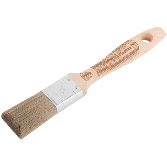 Высококачественный микс из темной натуральной и синтетической щетины, 75% топс. Оптимально подходит для лазурей, пропиток, антисептиков. Нержавеющий обжим. Эргономичная ручка из бука. Дополнительная фиксация обжима на заклепки. Буковая ручка