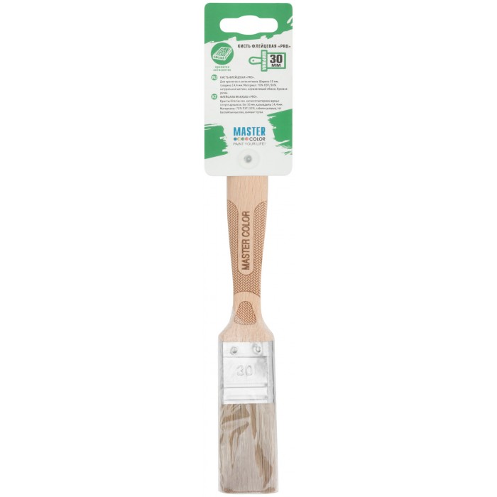 Кисть флейцевая, толщ. 14,4 мм, 70% ПЭT/30% нат.щетина, нерж. обжим., буковая ручка, ширина 30 мм (30-0021)