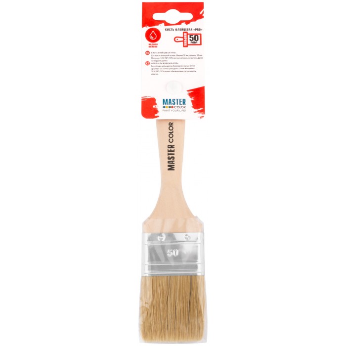 Кисть флейцевая, толщ. 18 мм, 50% ПБT/50% светлая натур. щетина, нерж. обжим, ширина 50 мм (30-0043д)