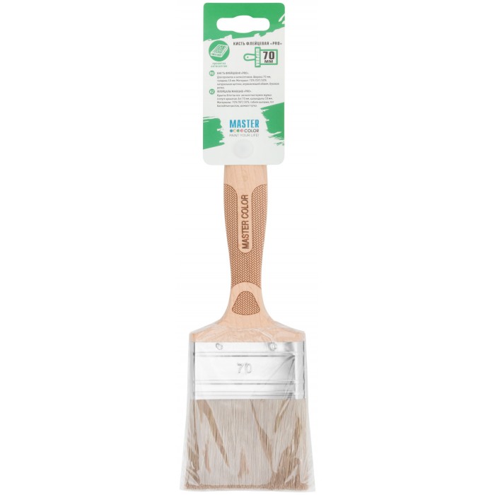 Кисть флейцевая, толщ. 18 мм, 70% ПЭT/30% нат.щетина, нерж. обжим., буковая ручка, ширина 70 мм (30-0025)