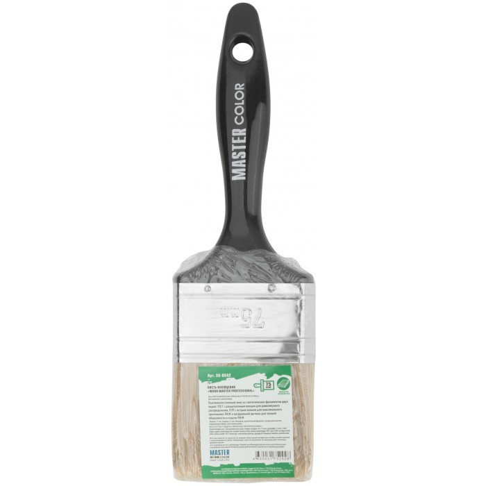 Кисть флейцевая "Wood Master", микс из 3-х видов щетины/филамента, 75х21х64 мм (30-0542)