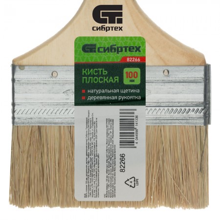 Кисть плоская 100 мм, натуральная щетина, деревянная ручка Сибртех (82266)