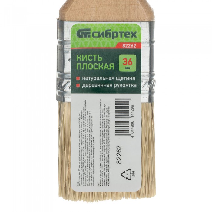 Кисть плоская 36 мм, натуральная щетина, деревянная ручка Сибртех (82262)