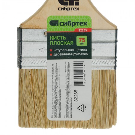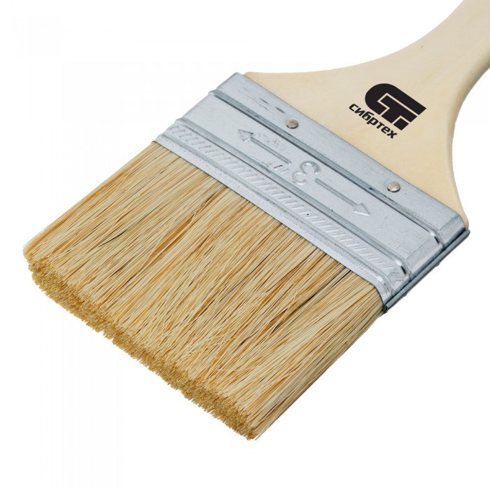 Кисть плоская 75 мм, натуральная щетина, деревянная ручка Сибртех (82265)