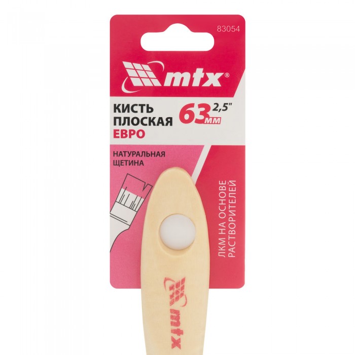 Кисть плоская "Евро" 2.5", натуральная щетина, деревянная ручка MTX (83054)