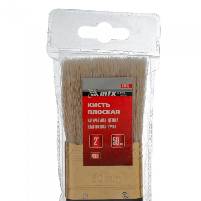 Кисть плоская "Профи" 2", натуральная щетина, пластмассовая ручка MTX (83162)