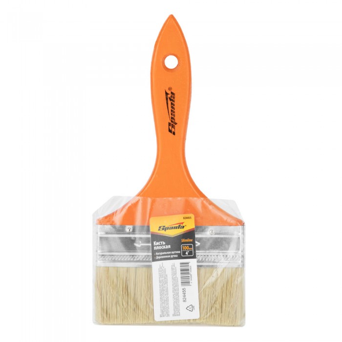 Кисть плоская Slimline 4" (100 мм) натуральная щетина, деревянная ручка Sparta (824455)