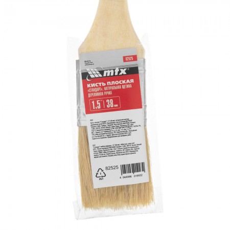 Кисть плоская "Стандарт" 1.5" (38 мм) натуральная щетина, деревянная ручка MTX (82525)