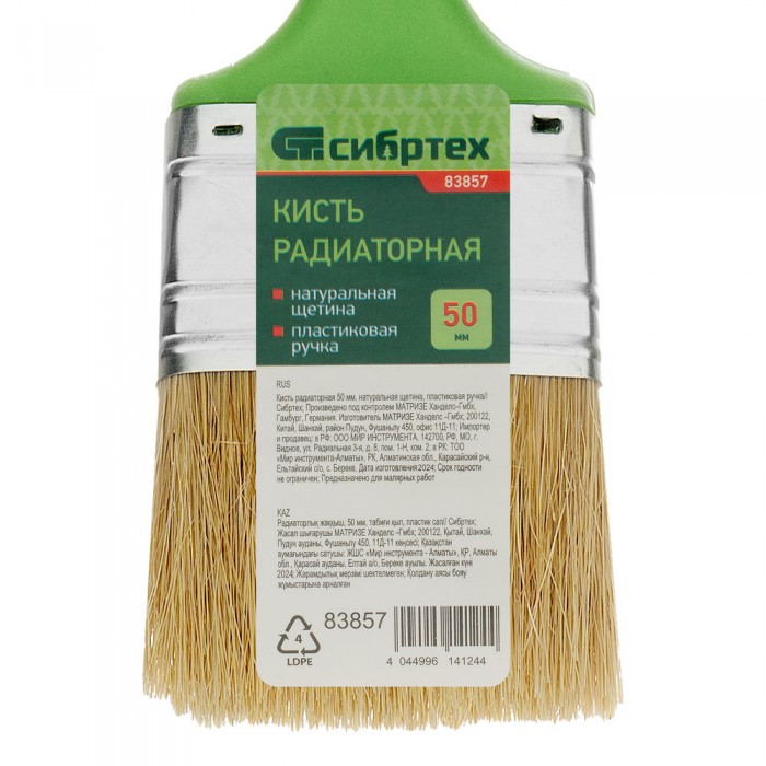 Кисть радиаторная 50 мм, натуральная щетина, пластиковая ручка Сибртех (83857)