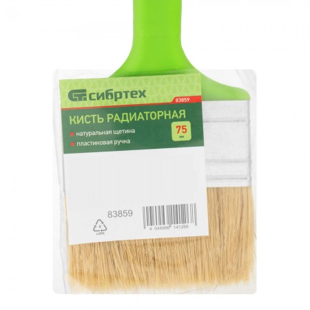 Кисть радиаторная 75 мм, натуральная щетина, пластиковая ручка Сибртех (83859)