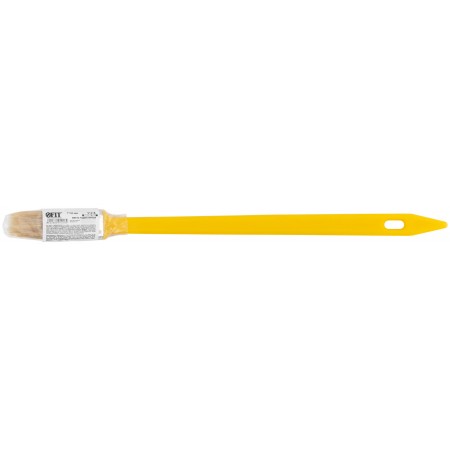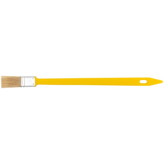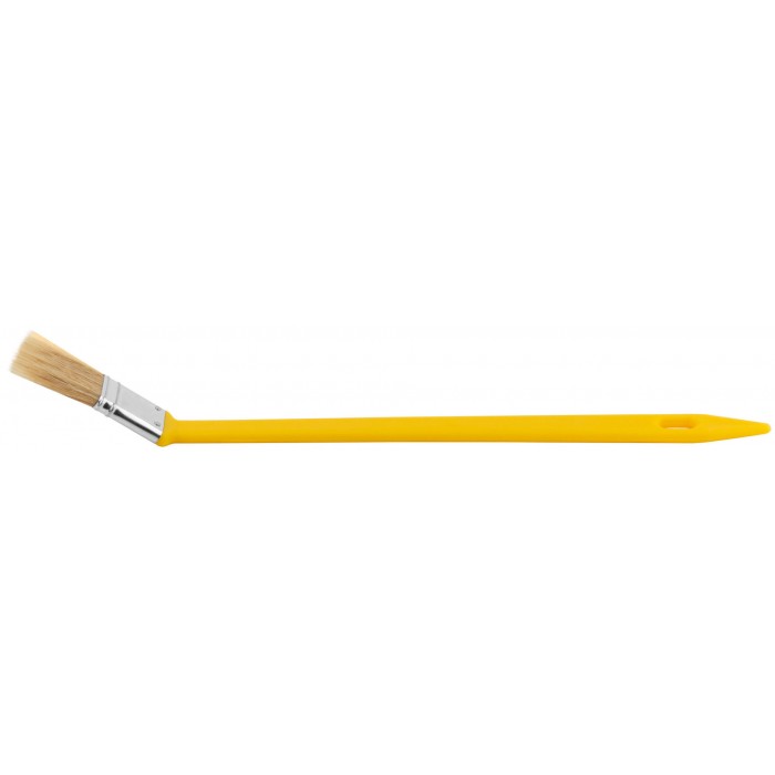 Для работы со всеми видами лакокрасочных материалов. Используется для окраски батарей, работы в труднодоступных местах. Натуральная светлая щетина, пластиковая ручка, обойма из инструментальной стали.