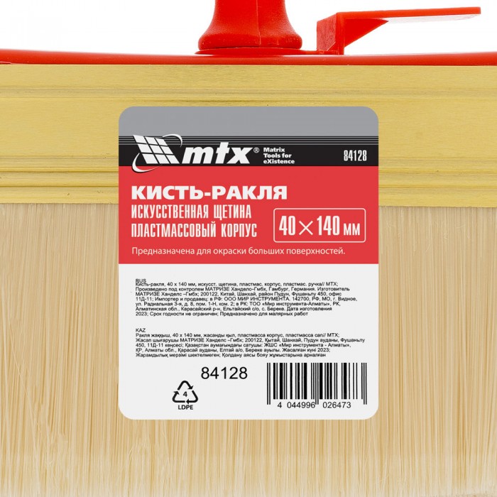 Кисть-ракля, 40 х 140 мм, искусственная щетина, пластмассовый корпус, пластмассовая ручка MTX (84128)